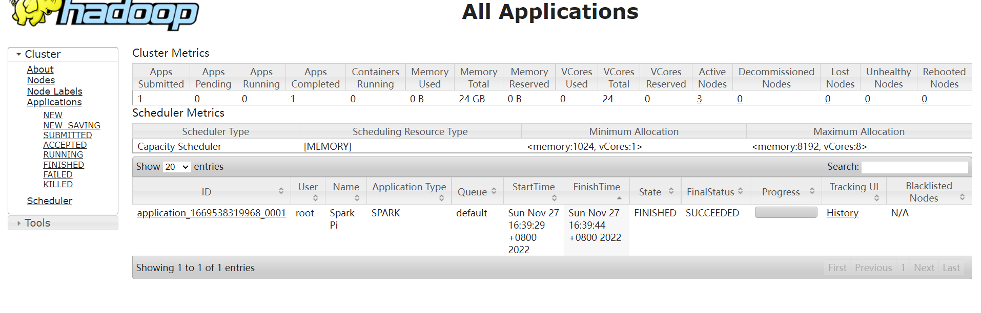 spark-submit --master yarn --class org.apache.spark.examples.SparkPi $SPARK_HOME/examples/jars/spark-examples_2.11-2.1.1.jar