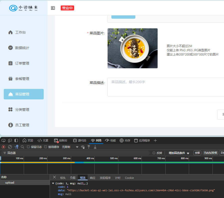 关于菜品管理就基本实现了,下一章小柒味来 - 店铺营业状态接口实现
